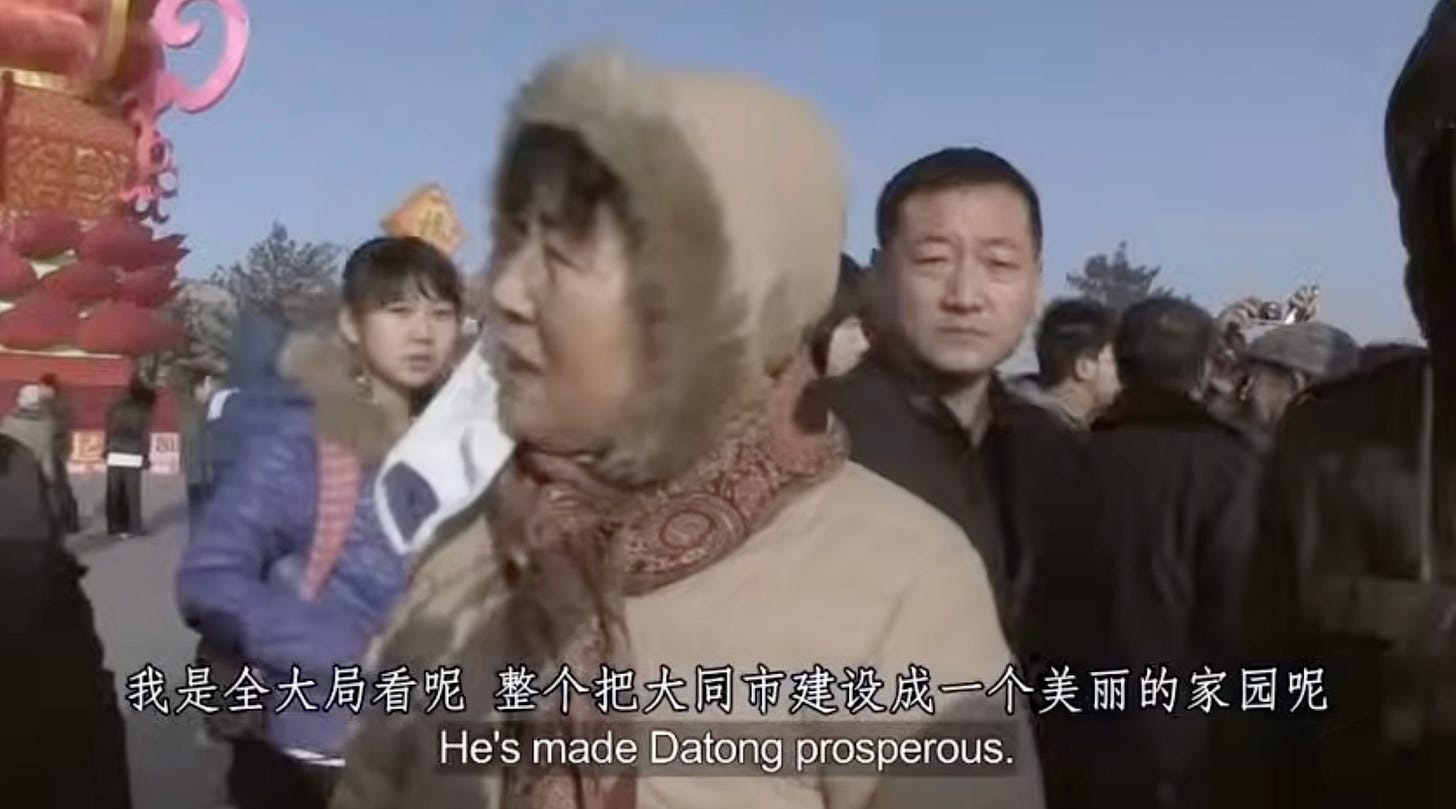 “他是为了整个大同不是个人。He did it for all of Datong, not for himself.”