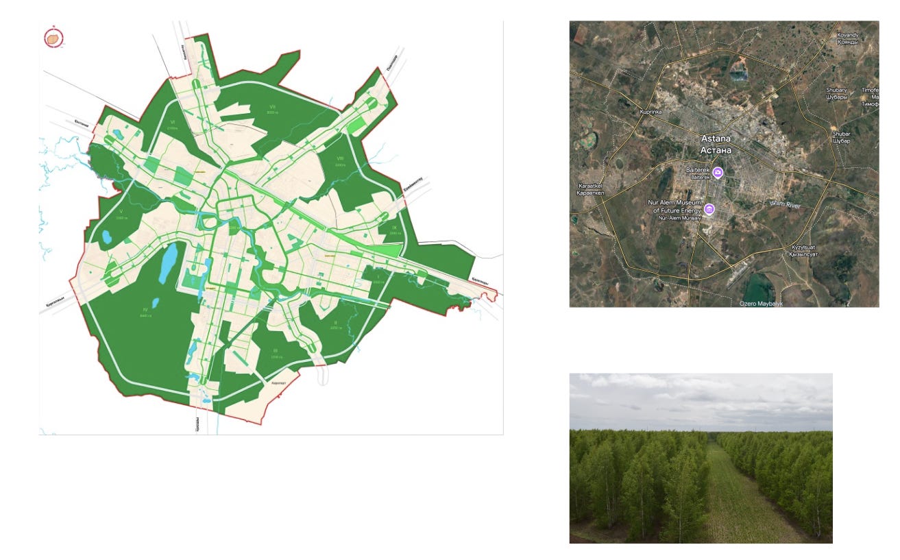 A green belt of over 100,000 hectares (1,000 km²) was built – larger than all 5 boroughs of New York City combined: 778 km² (source) (image source), as indicated on the Google map satellite view. A successful large-scale afforestation project (photo source: Astana Ormany LLP)